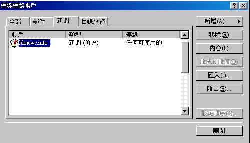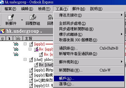 1. Run Outlook Express 工具 --> 帳戶