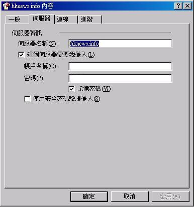 3. 伺服器 在填上帳戶名稱和密碼, 按確定