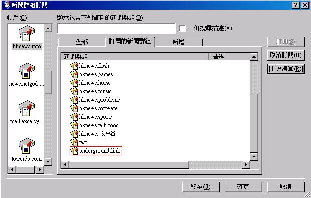 5. 在訂閱新聞群組中, 按重設清單, 你會見到 underground.link 按"訂閱"就可!